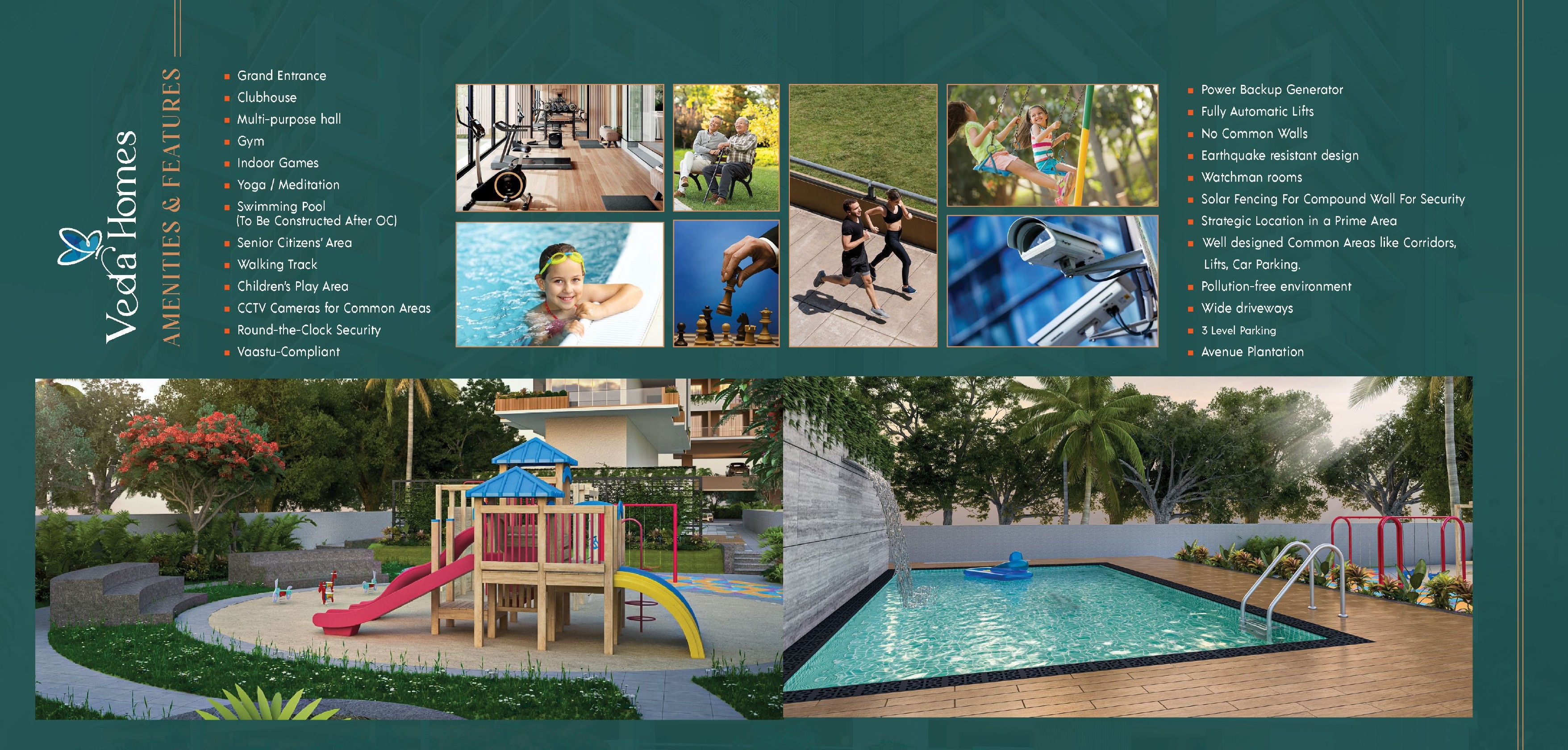 • Safety: 24/7 security & CCTV surveillance, watchman rooms, solar fencing for compound wall